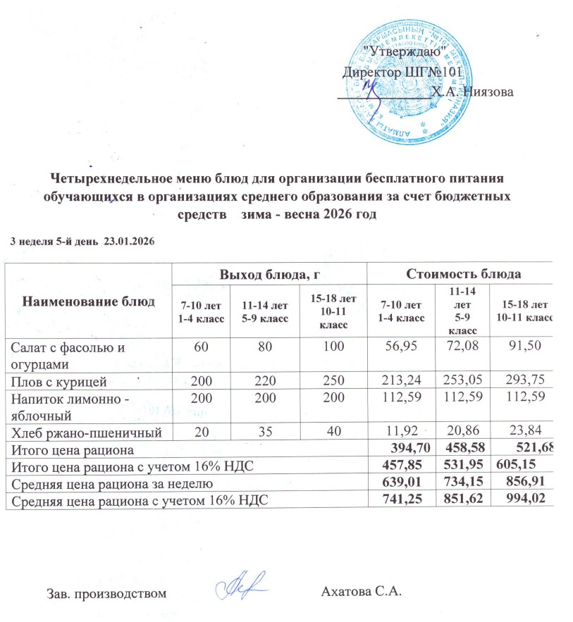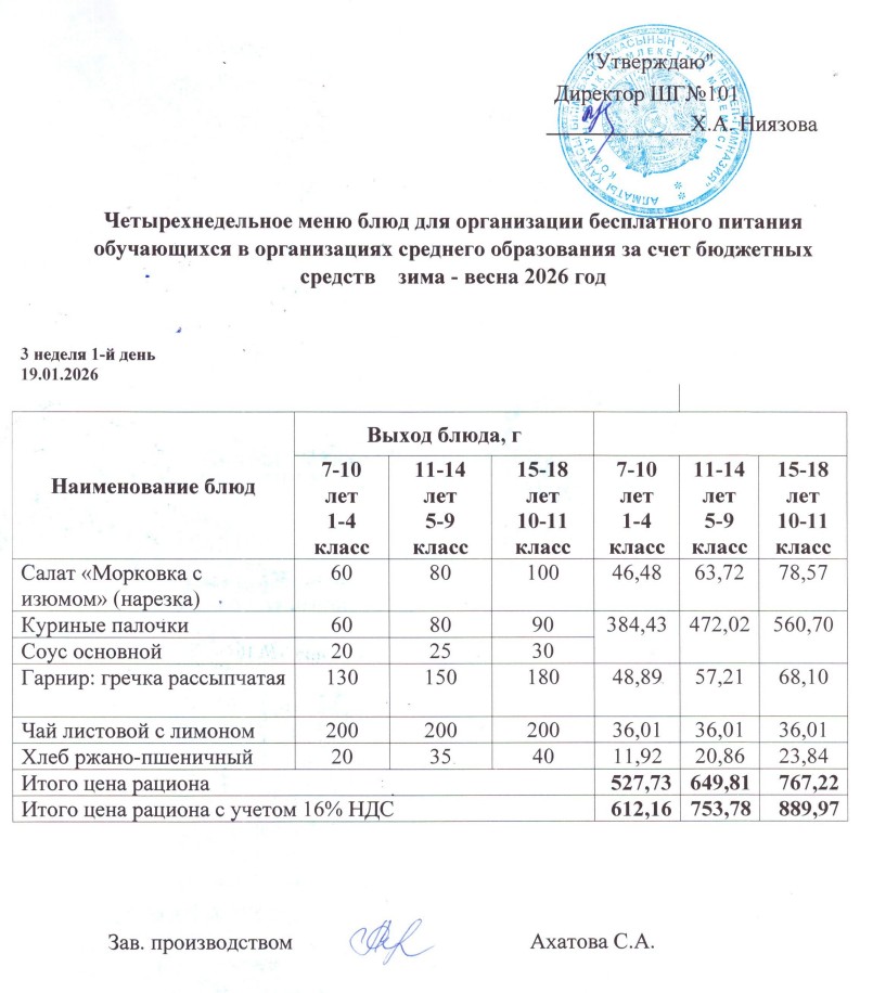 Ас мәзірі 19.01.-23.01.2026ж » КГУ "Школа-гимназия №101" Управления образования г.Алматы