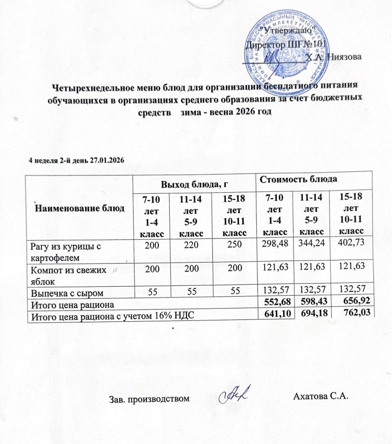Қаңтар айы 4 апта 2-күн ас мәзірі. ​ » КГУ "Школа-гимназия №101" Управления образования г.Алматы