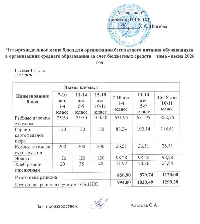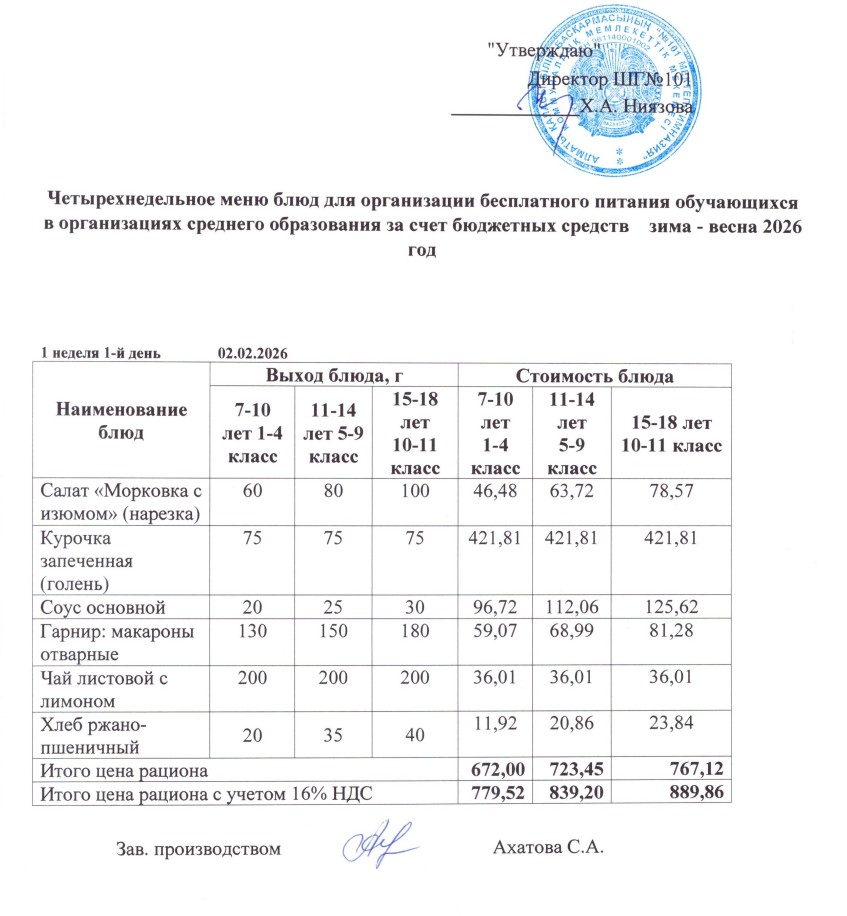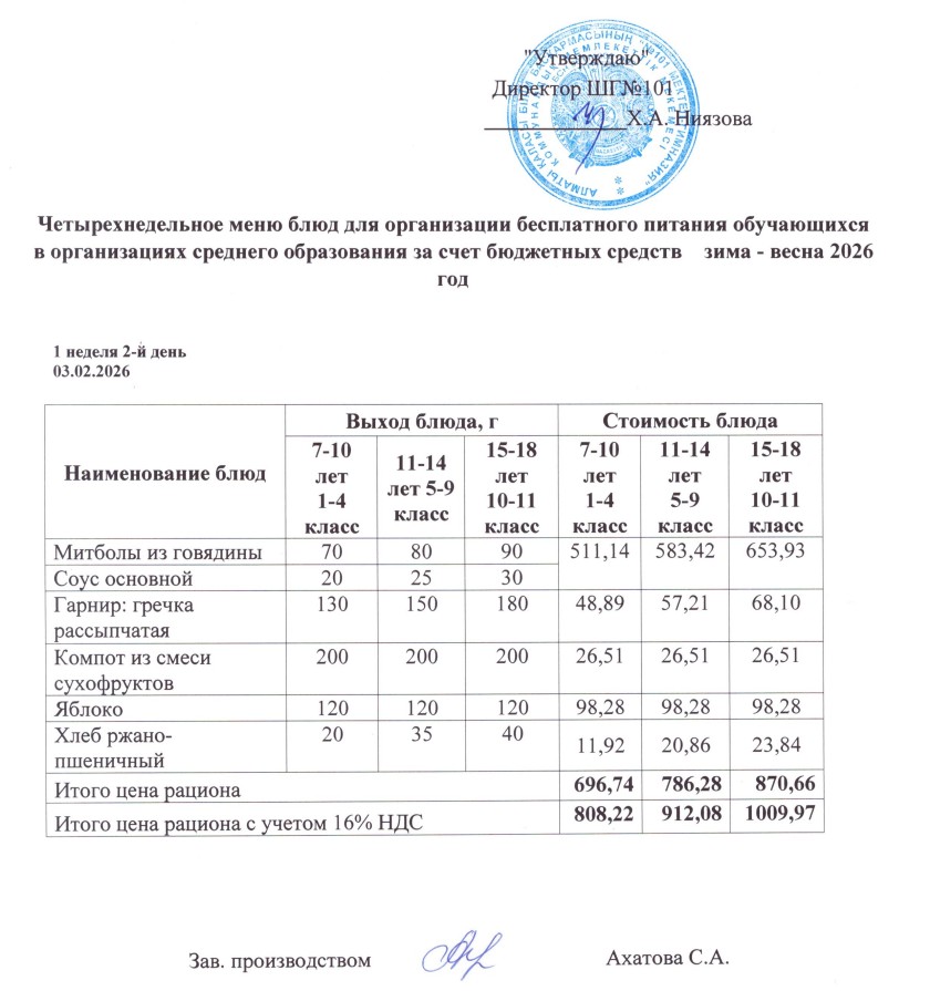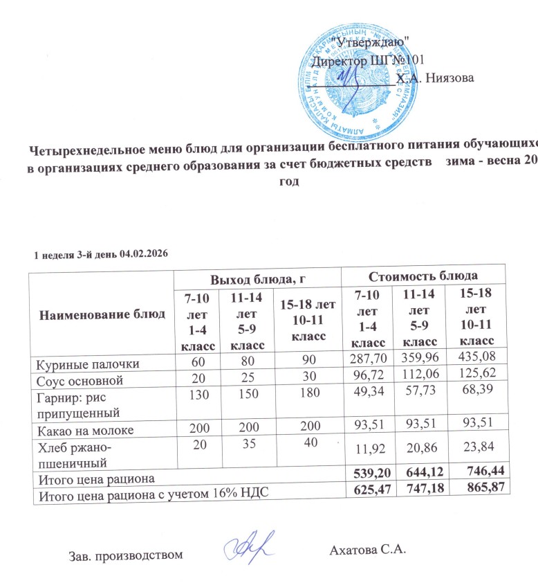 Ас мәзірі 02.02.-06.02.2026ж » КГУ "Школа-гимназия №101" Управления образования г.Алматы