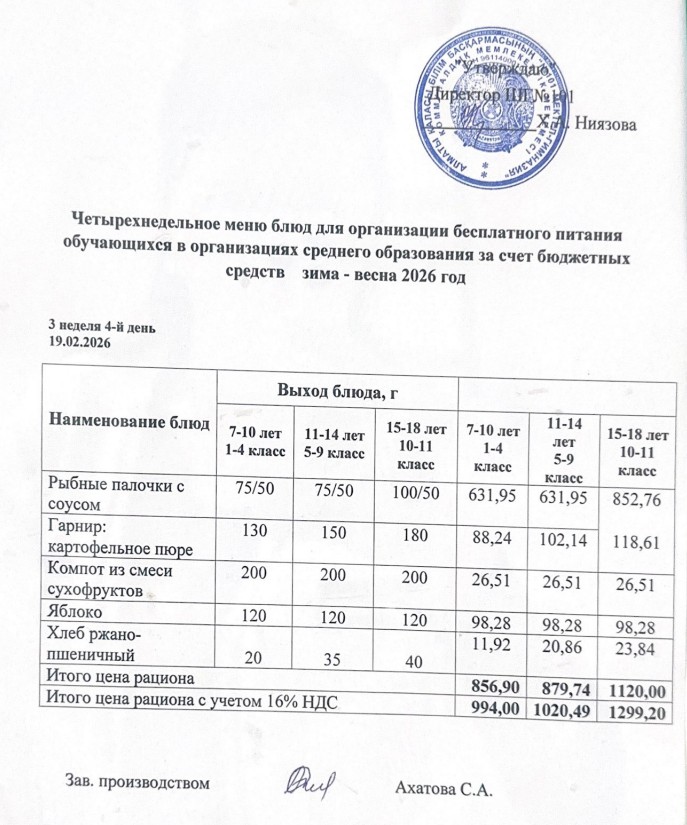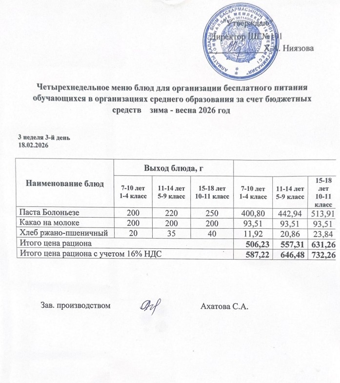 Ас мәзірі 16.02.-20.02.2026ж » КГУ "Школа-гимназия №101" Управления образования г.Алматы