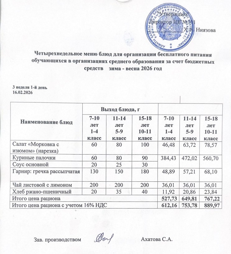 Ақпан айы 3 апта 1-күн ас мәзірі. » КГУ "Школа-гимназия №101" Управления образования г.Алматы
