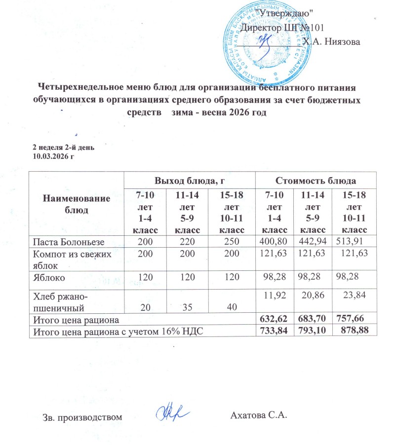 Наурыз айы 2 апта 2-күн ас мәзірі. » КГУ "Школа-гимназия №101" Управления образования г.Алматы