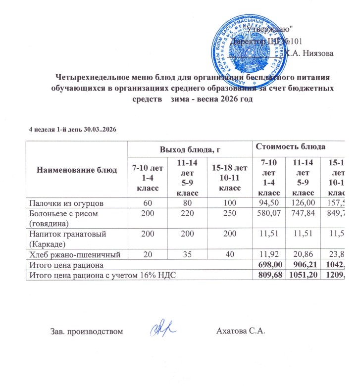Сәуір айы 1 апта 1-күн ас мәзірі. » КГУ "Школа-гимназия №101" Управления образования г.Алматы
